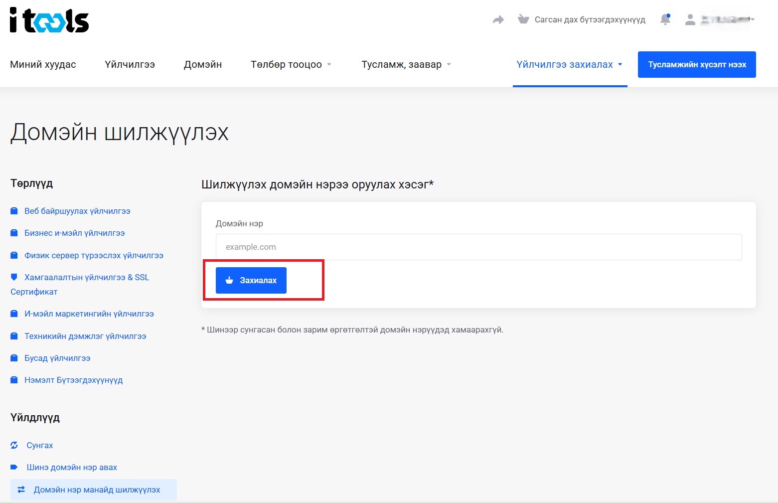 Анхааруулга: Хугацаа дууссан домайн нэрийг шилжүүлэх боломжгүй.