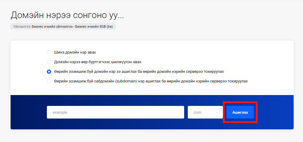 Эсвэл Өөрийн эзэмшиж буй домэйн нэрээ ашиглах товчыг дарна.